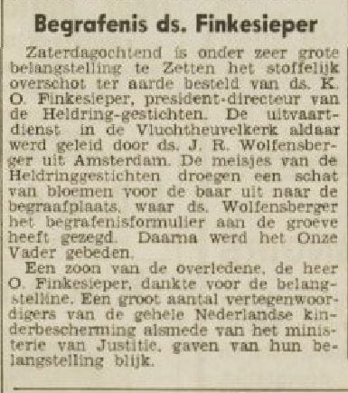 Op 16 mei 1990 begon het strafproces tegen Finkensieper waarin hij, conform de eis, werd veroordeeld tot 6 jaar gevangenisstraf wegens ernstig seksueel misbruik van bewoners in de Zettense inrichting. In hoger beroep werd 8 jaar geëist. De uitspraak kwam op 14 november en was 6 jaar. Hiertegen heeft F. cassatie laten aantekenen. Hij loopt nog steeds vrij rond.
